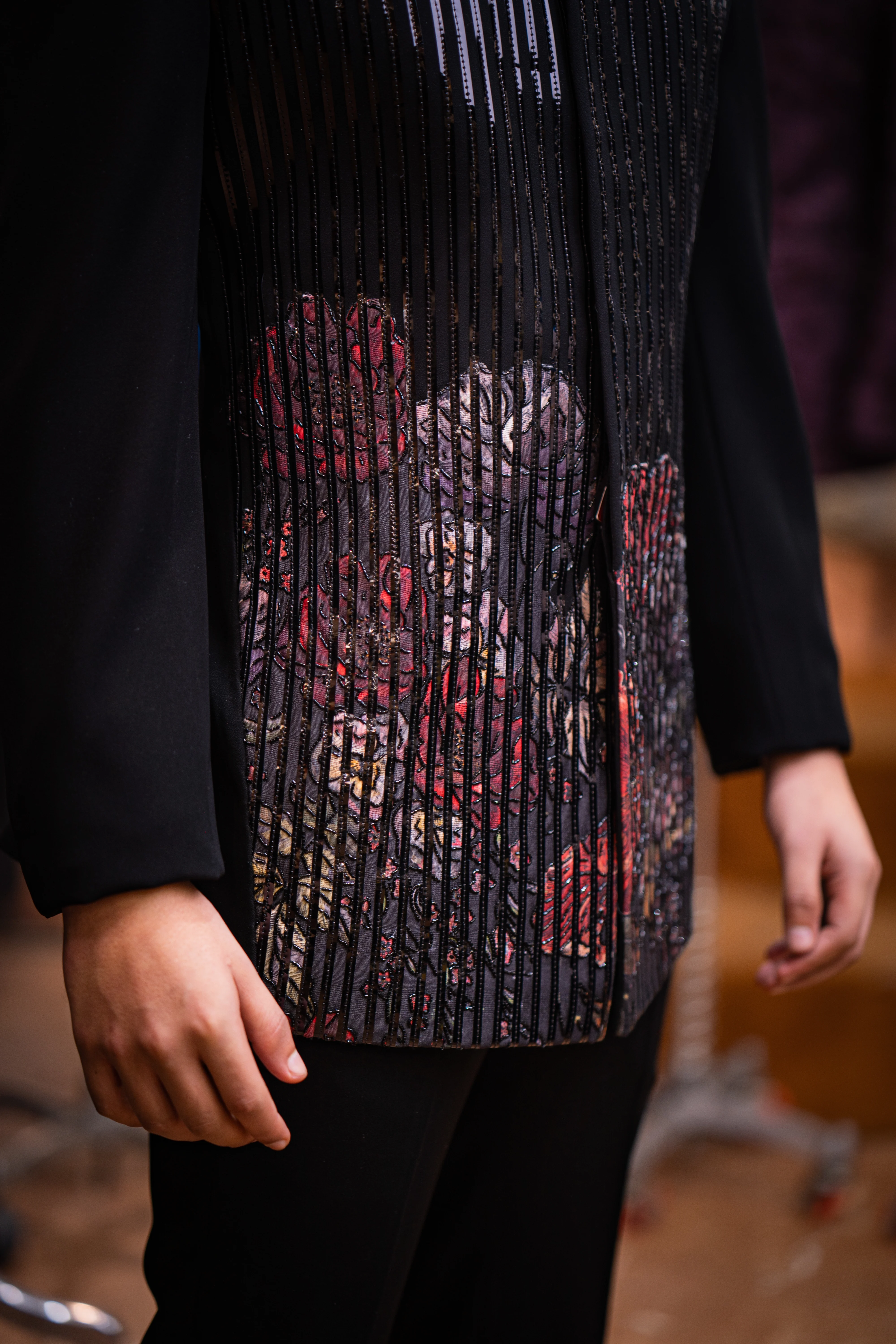 Look bold and sophisticated with our Contemporary Black Bandhgala with Shimmer and Floral Detailing. This suit is perfect for weddings, receptions, and high-end events. The sleek black color exudes modern elegance, while the subtle shimmer and intricate floral detailing add a luxurious touch to your overall look.