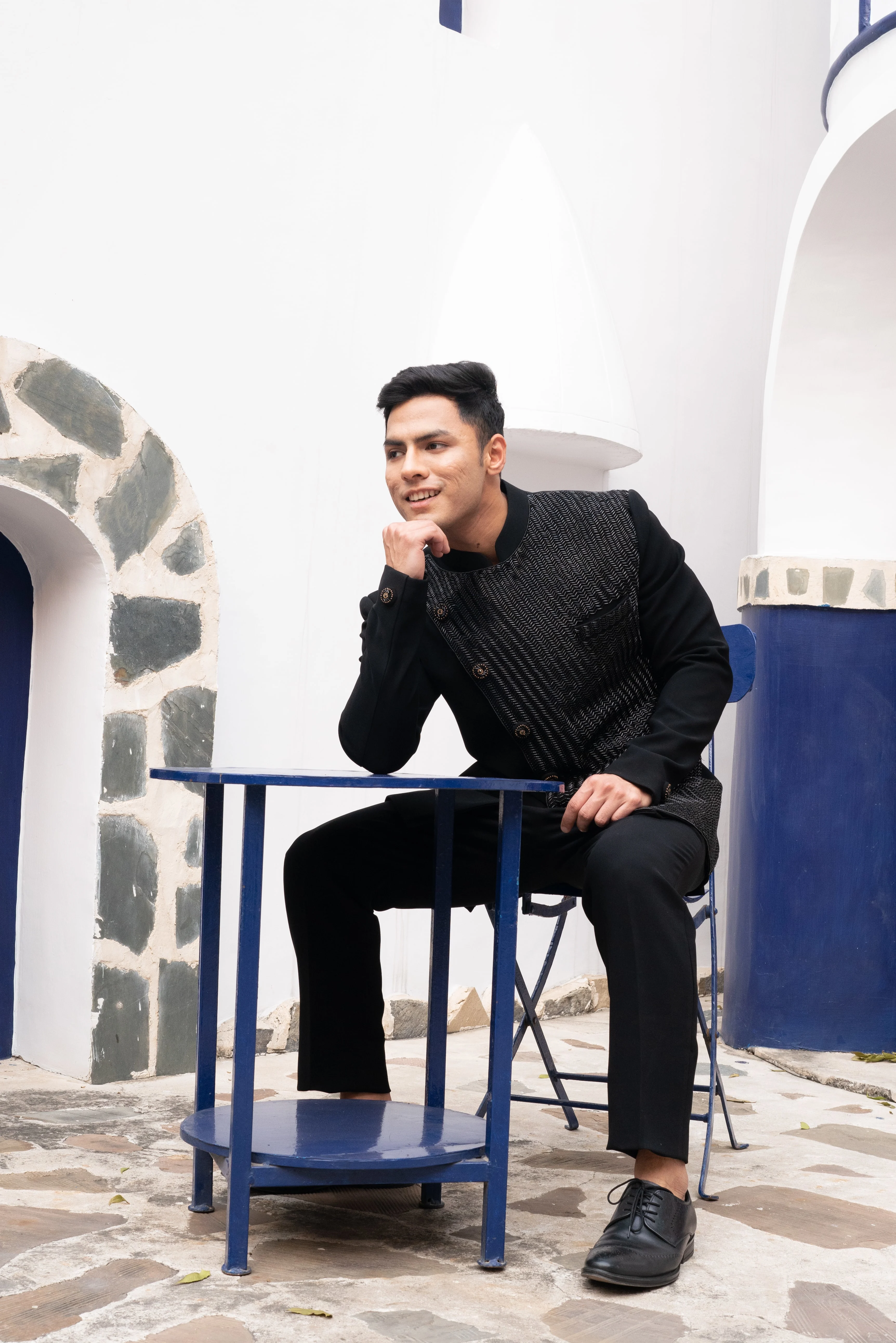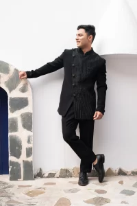 Step into style – Order your Noir Line Asymmetric Bandhgala today!