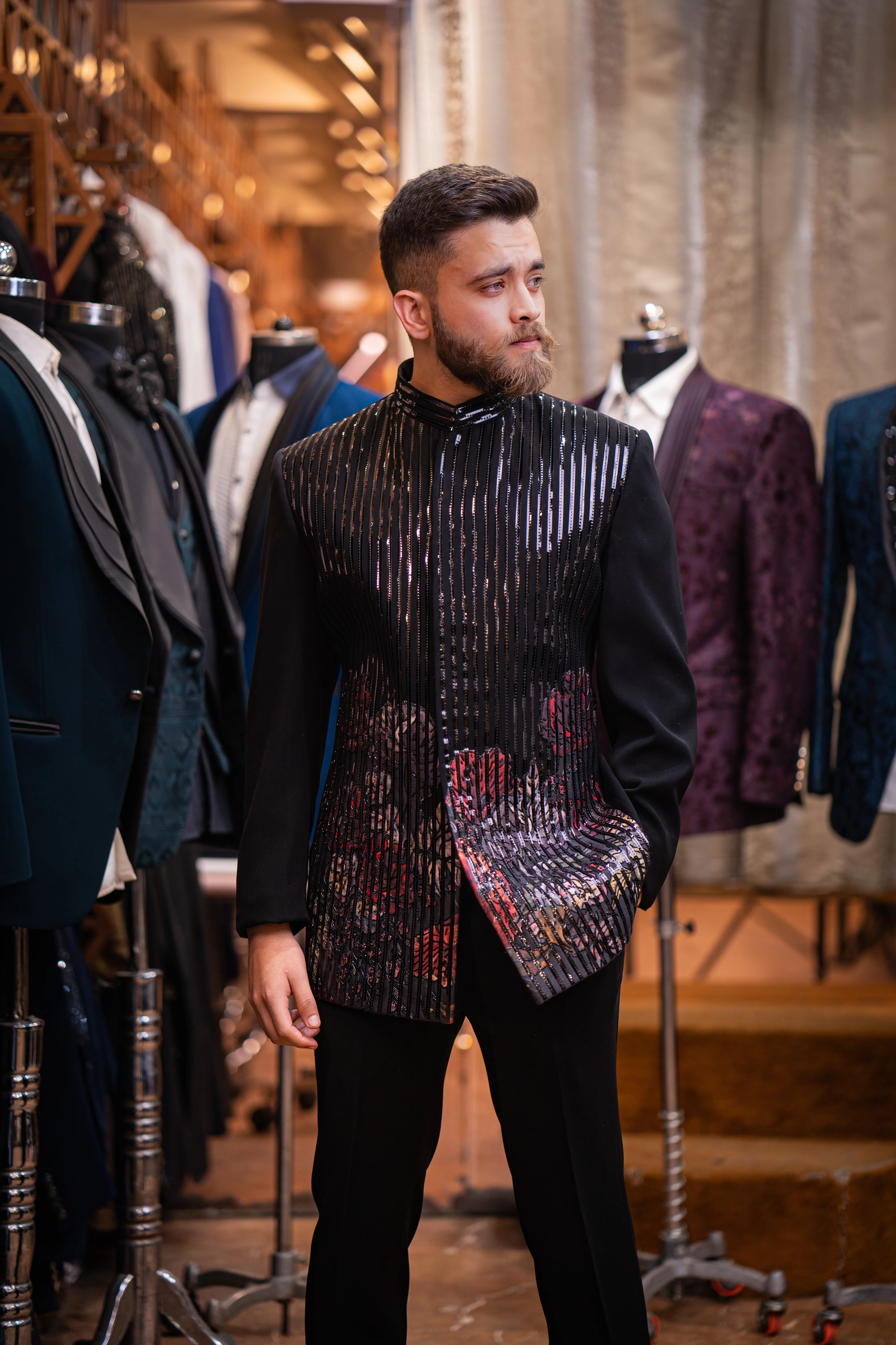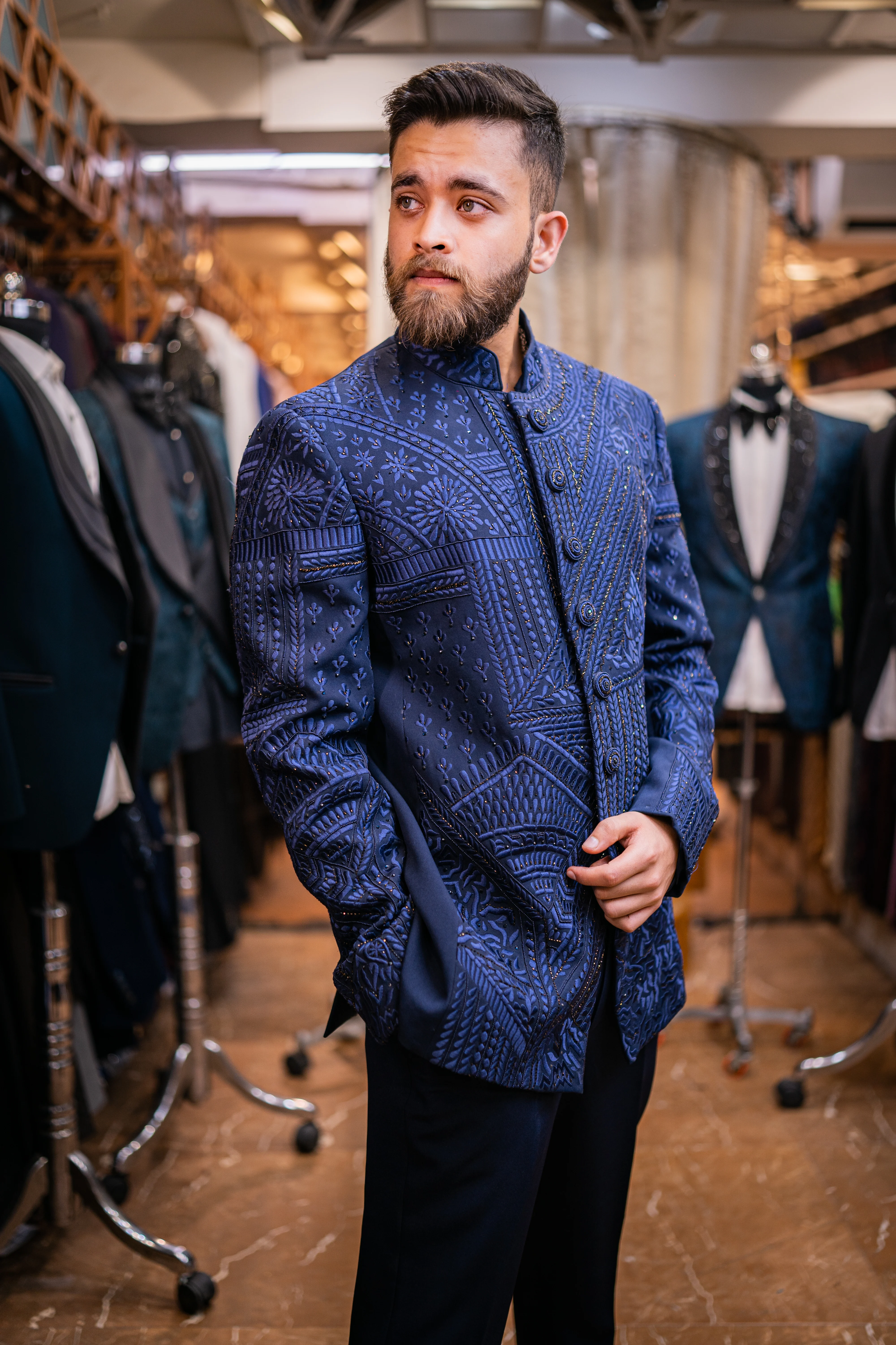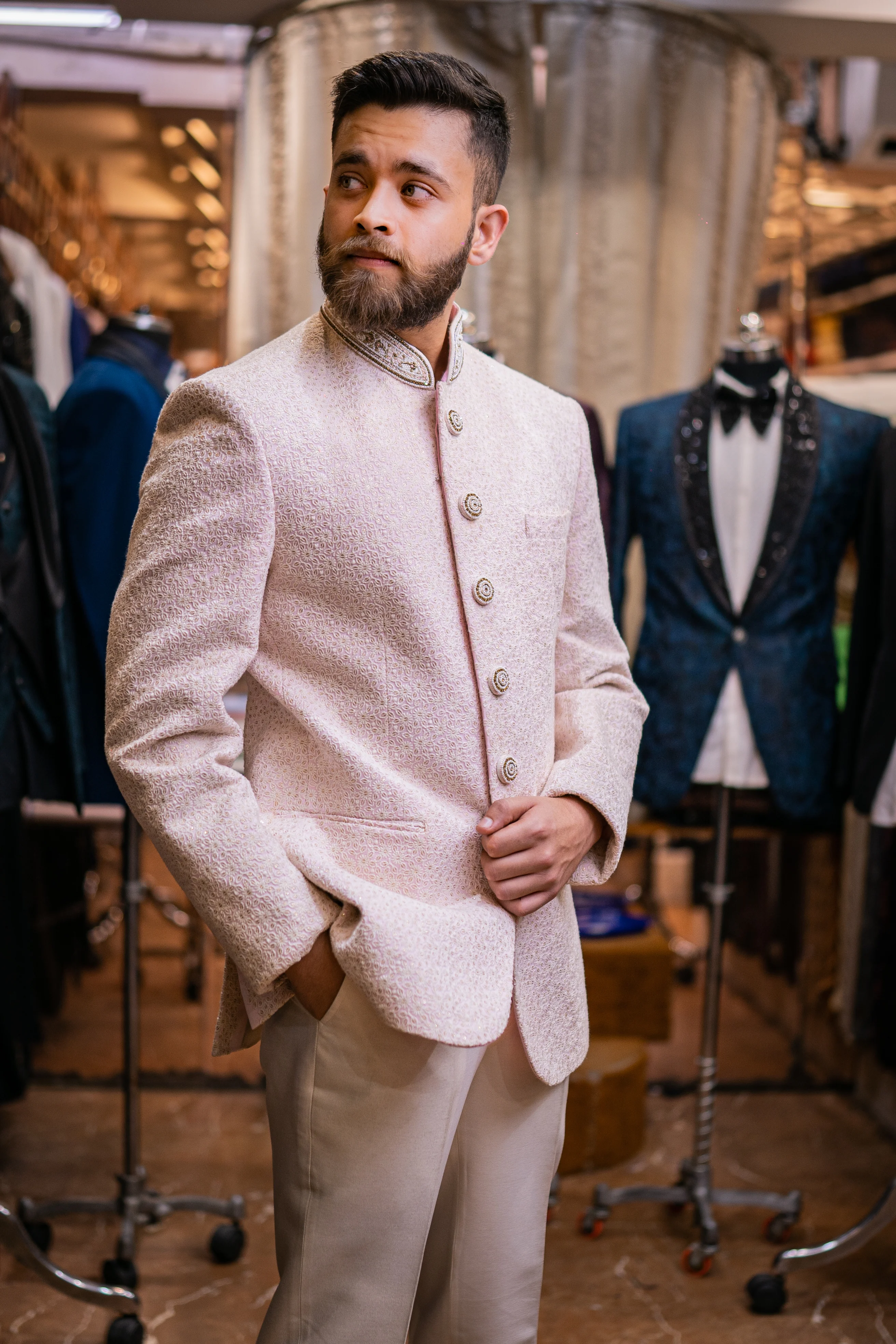 Crafted from luxurious fabrics with intricate detailing, our Jodhpuri suits are designed for the modern man who appreciates timeless elegance. Visit our store in Delhi or shop online to explore this regal collection.