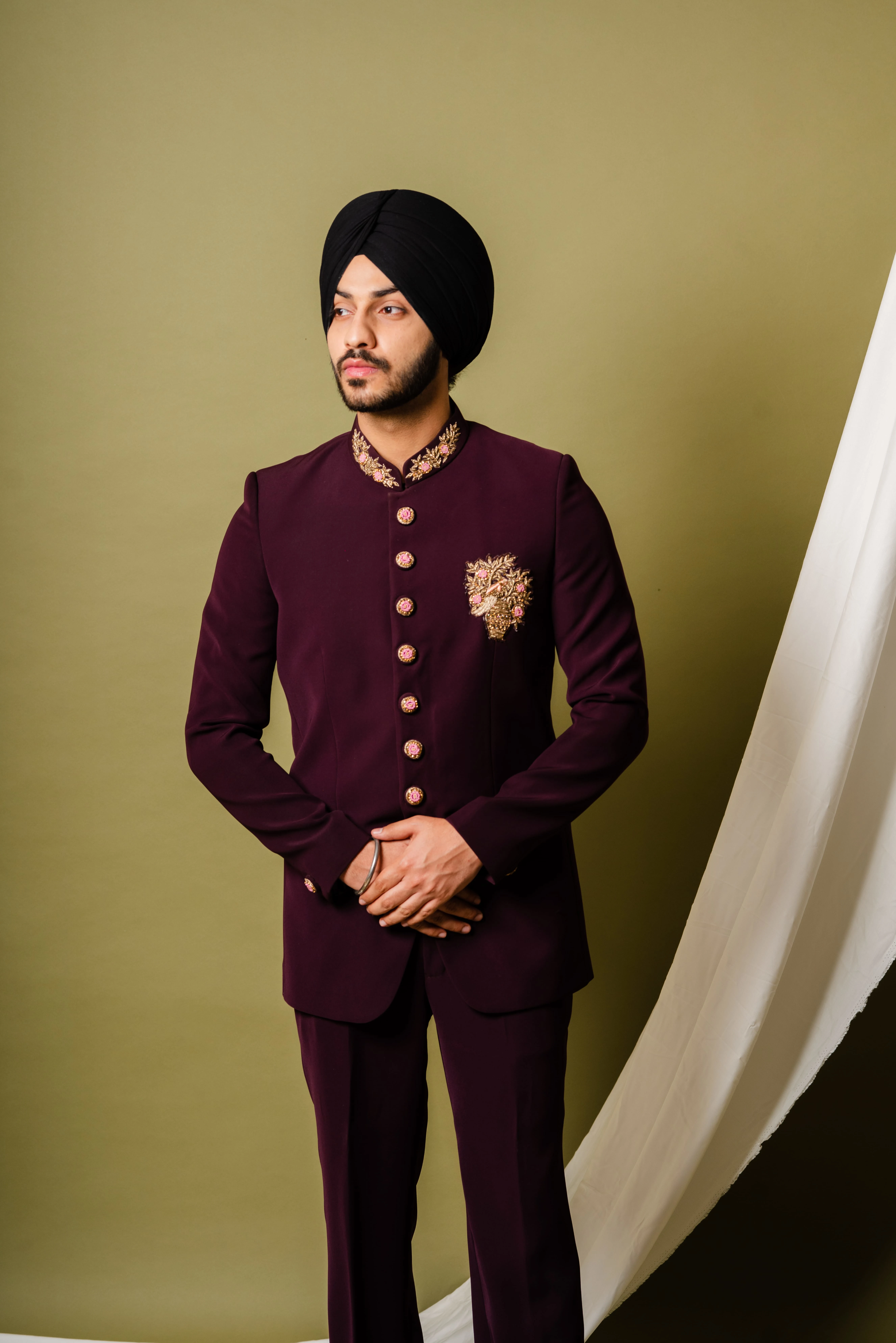 Our Jodhpuri suits are crafted from high-quality fabrics such as silk, velvet, and brocade, ensuring a luxurious feel and appearance. These materials are chosen for their comfort, durability, and aesthetic appeal.